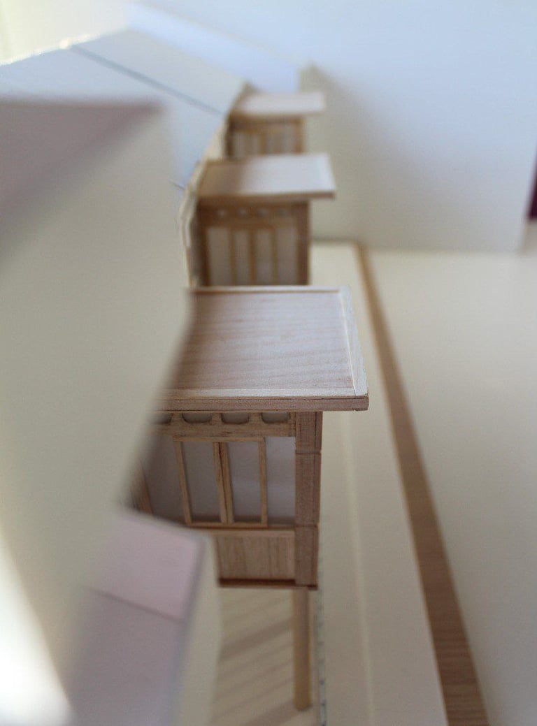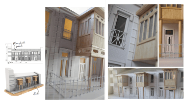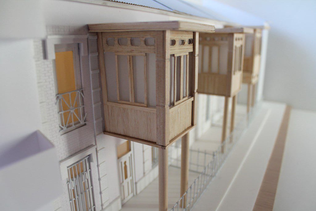 La maqueta representa conceptualmente tres viviendas de la colonia moderna de Madrid en La Guindalera.