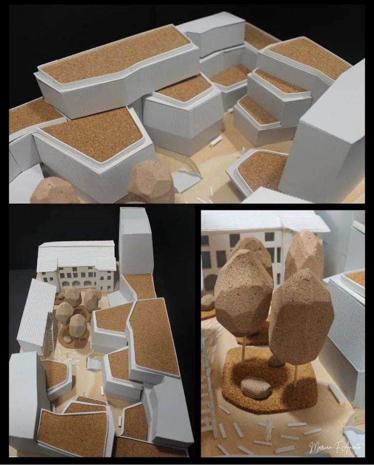 El proceso de conceptualización para representar adecuadamente la vegetación y la edificación es fundamental para el diseño arquitectónico. A través de pruebas de representación en distintos materiales, se busca encontrar la mejor manera de plasmar la naturaleza y la estructura en un proyecto.